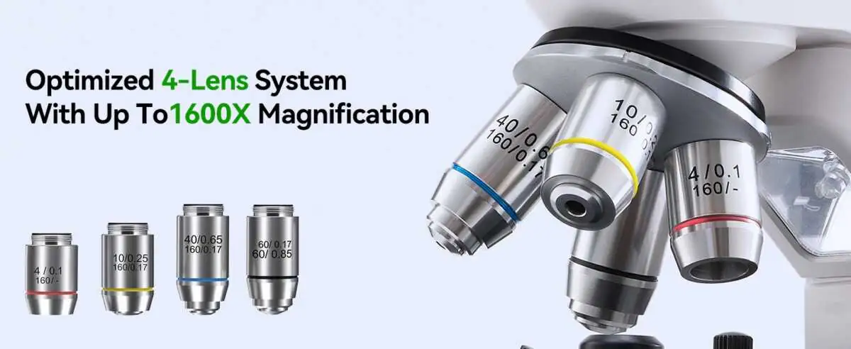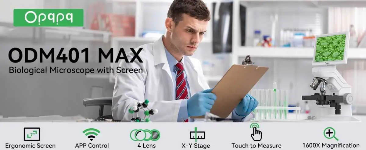 Opqpq ODM401 MAX 4 Lens 1600X Digital Biological Microscope with Measuring and Touch Screen–Unlock the Hidden World of Microorganisms—Perfect for Home, School, and Lab!